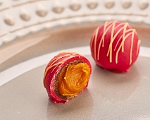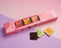 -Состав набора: трюфель с карамелью, лимонный смузи, трюфель Манго-Маракуйя, шоколадный ганаш крем, брусничный мармелад, сливочный трюфель, розовое сердечко с кокосовым кремом, ореховое наслаждение, пралине