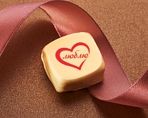 13 конфет: Монблан пряная вишня, тартуфо в карамельном шоколаде, клубничный смузи, трюфель с карамелью, трафарет "Люблю" апельсиновый марципан